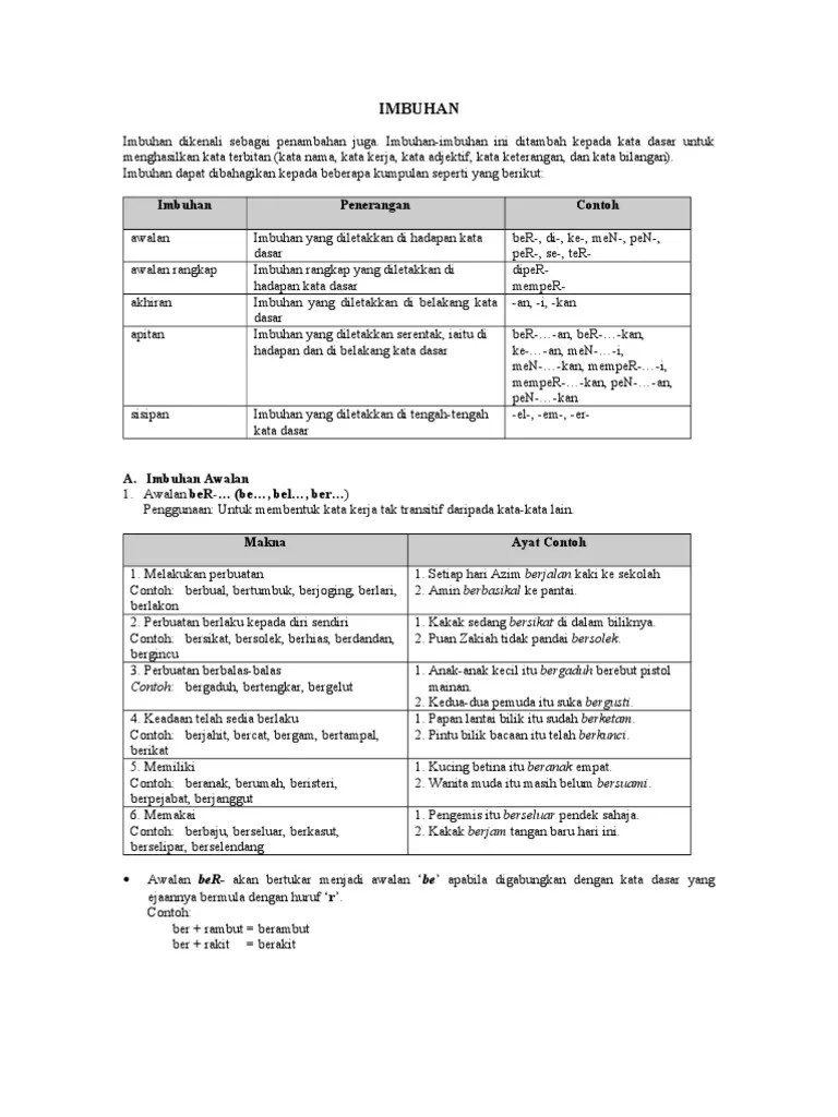 Menurut untoro dkk 2010249 imbuhan awalan atau . Awalan imbuhan diletakkan di hadapan kata dasar. Imbuhan apitan wujud dalam kata nama terbitan , kata kerja terbitan dan kata. Contoh ayat imbuhan apitan kata kerja. Contoh perkataan imbuhan kata kerja .